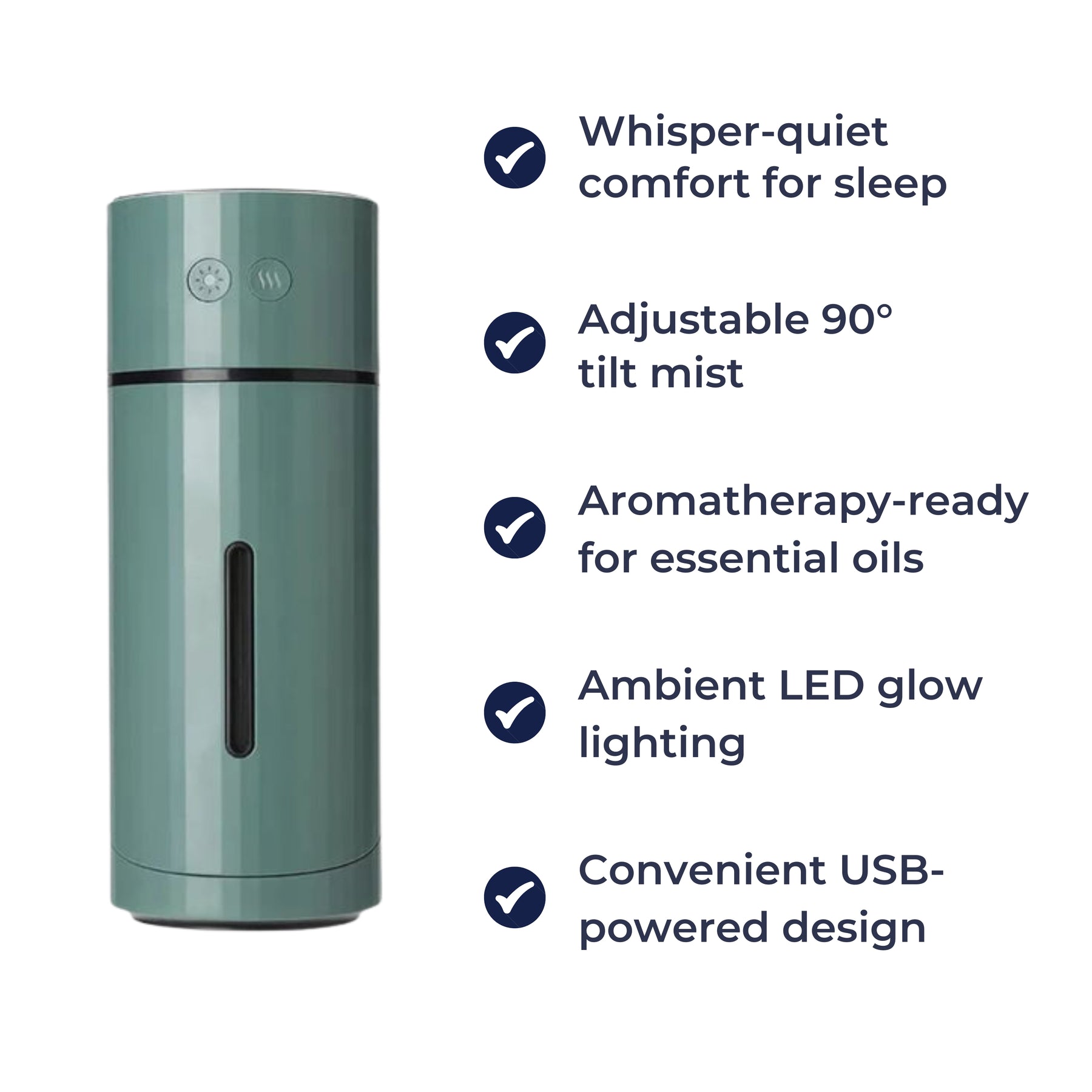 The AeroMist Portable Aromatherapy Humidifier fights dry air with soothing mist, adjustable spray, and calming light. Compact and USB-powered, it relieves dryness, eases breathing, and enhances sleep anywhere.
