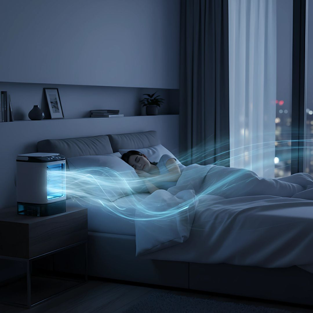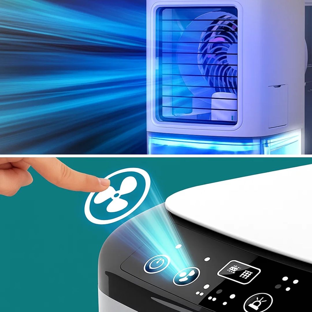 Beat the heat with the CoolEase Portable Air Cooler. With cooling, humidification, adjustable settings, and a calming night light, it eases hot, dry air efficiently while saving energy—perfect for sleep and work.