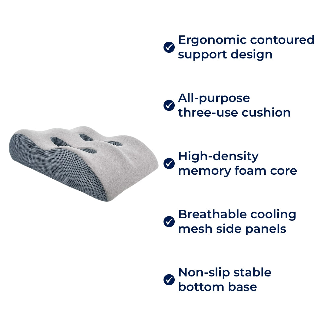 Support your back, hips, and knees with ergonomic elevation to reduce tension and discomfort, easing pressure and pain using the ElevateEase Leg Elevation Pillow.