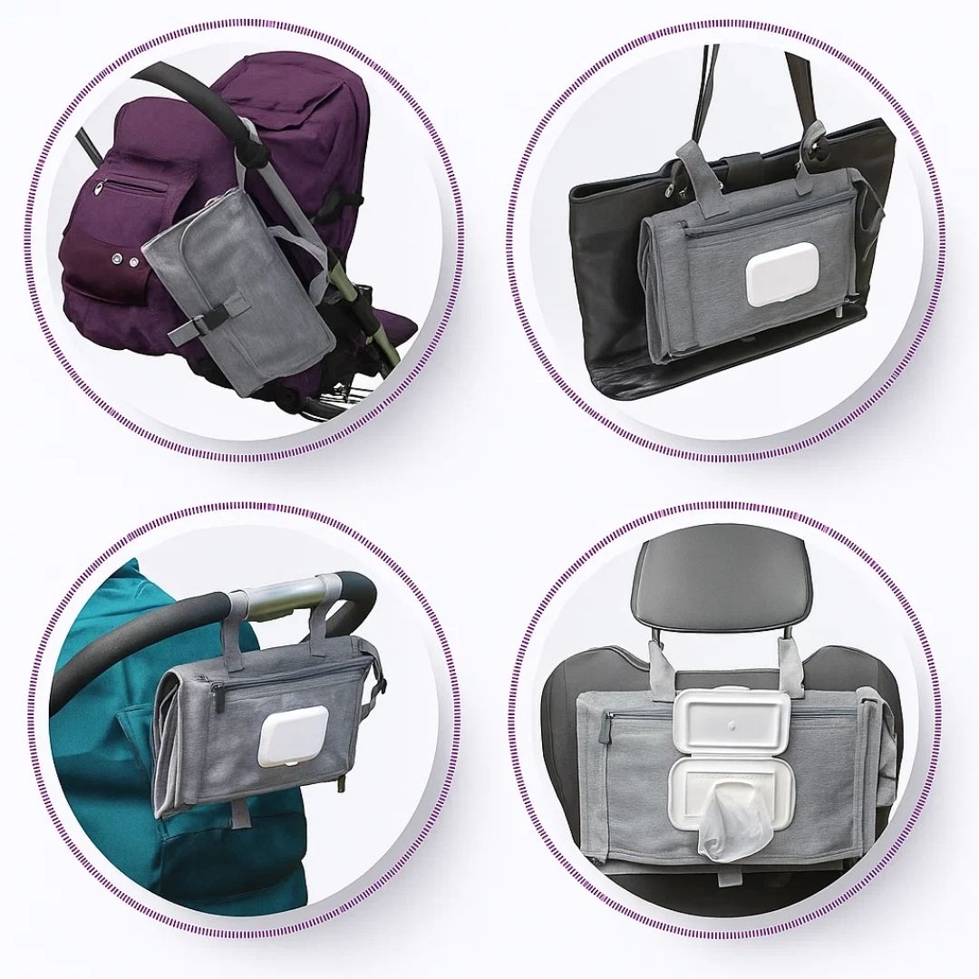 Spacious pockets with clever compartments keep nappies, wipes, and creams neatly organised, accessible whenever needed.