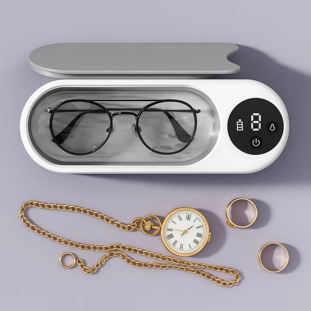 Transform daily cleaning with our PureWave Ultrasonic Cleaner. Its 360° vibrations restore shine to glasses, jewellery, and retainers. Compact, portable, and eco-friendly, it makes hygiene effortless.