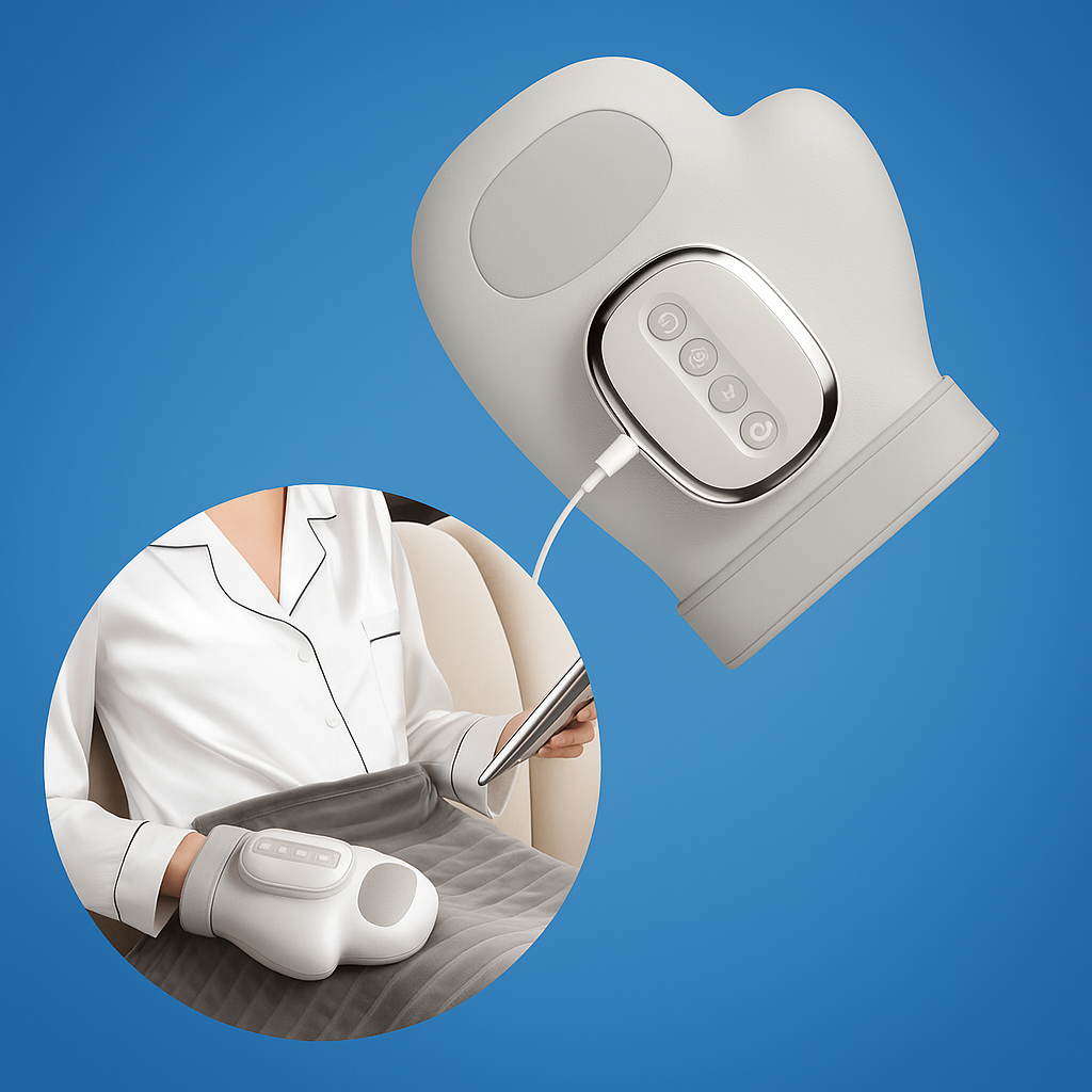 The CalmPulse Hand Compression Massager combines precision air compression and soothing heat therapy to relieve tension, improve circulation, and ease discomfort in the hands and wrists. It gently restores flexibility and comfort after typing, crafting, or daily use.