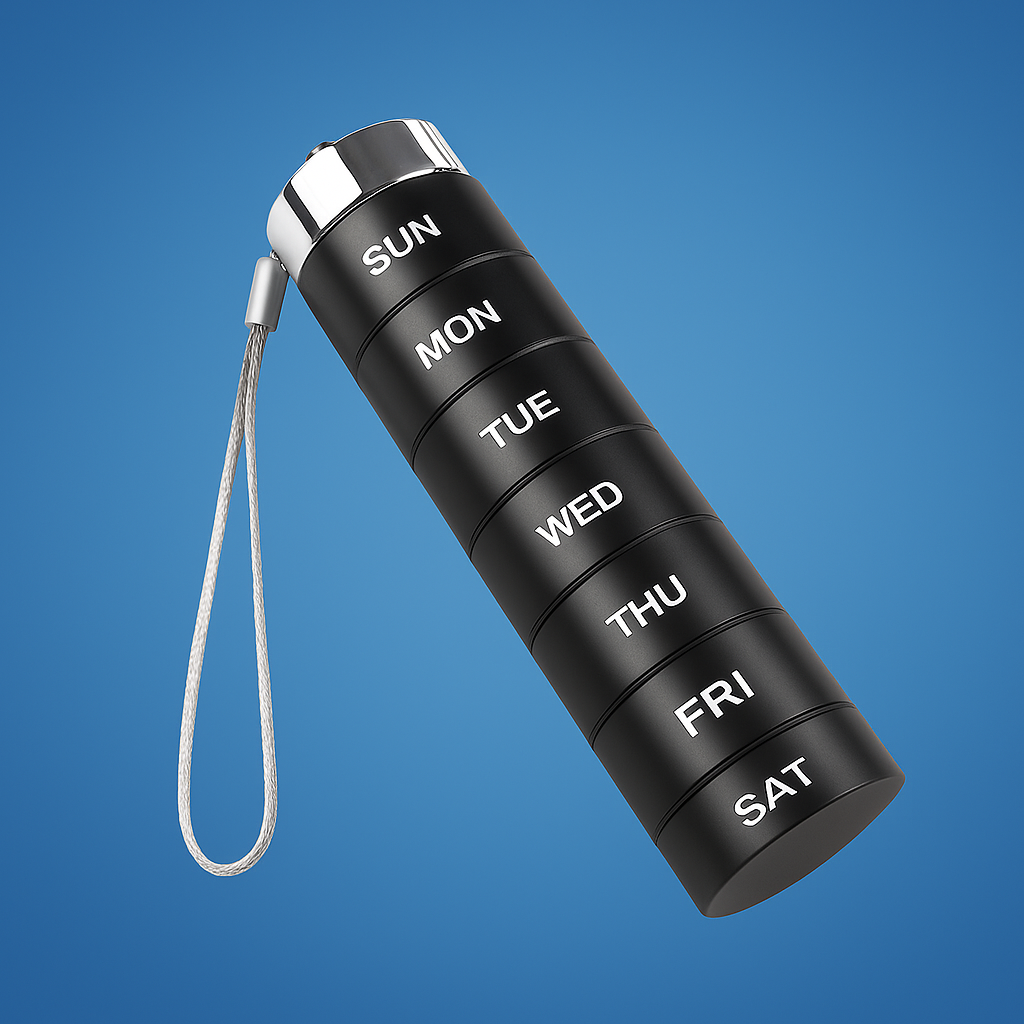 Made from high-quality aluminium alloy, the DoseGuard is BPA-free, durable, and corrosion-resistant. Unlike standard plastic organisers, it won’t leach harmful chemicals or crack over time, ensuring your medication stays pure, safe, and protected.