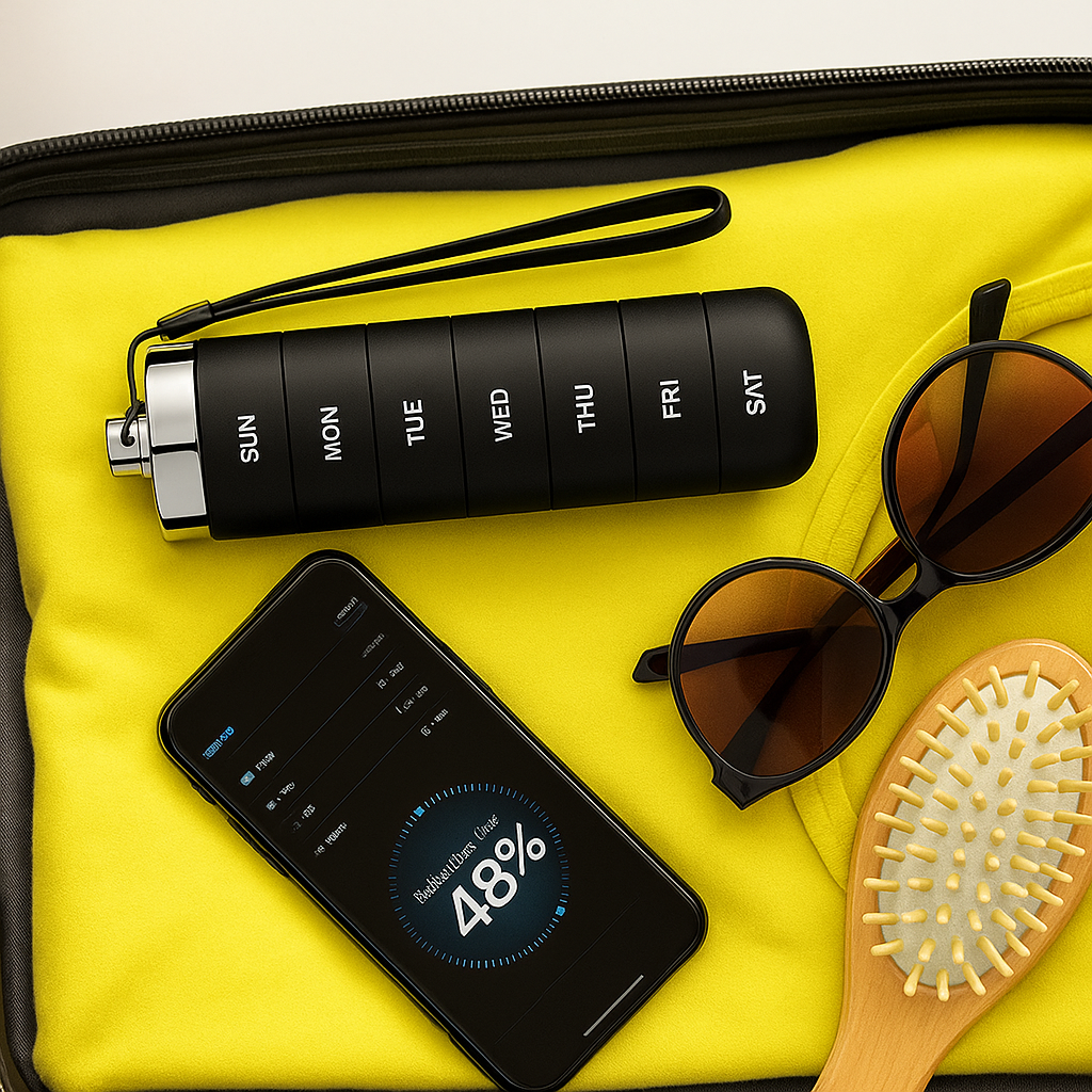 Lightweight and compact, DoseGuard travels effortlessly. Whether for work, weekends, or extended trips, users stay consistent with their regimen wherever they go.