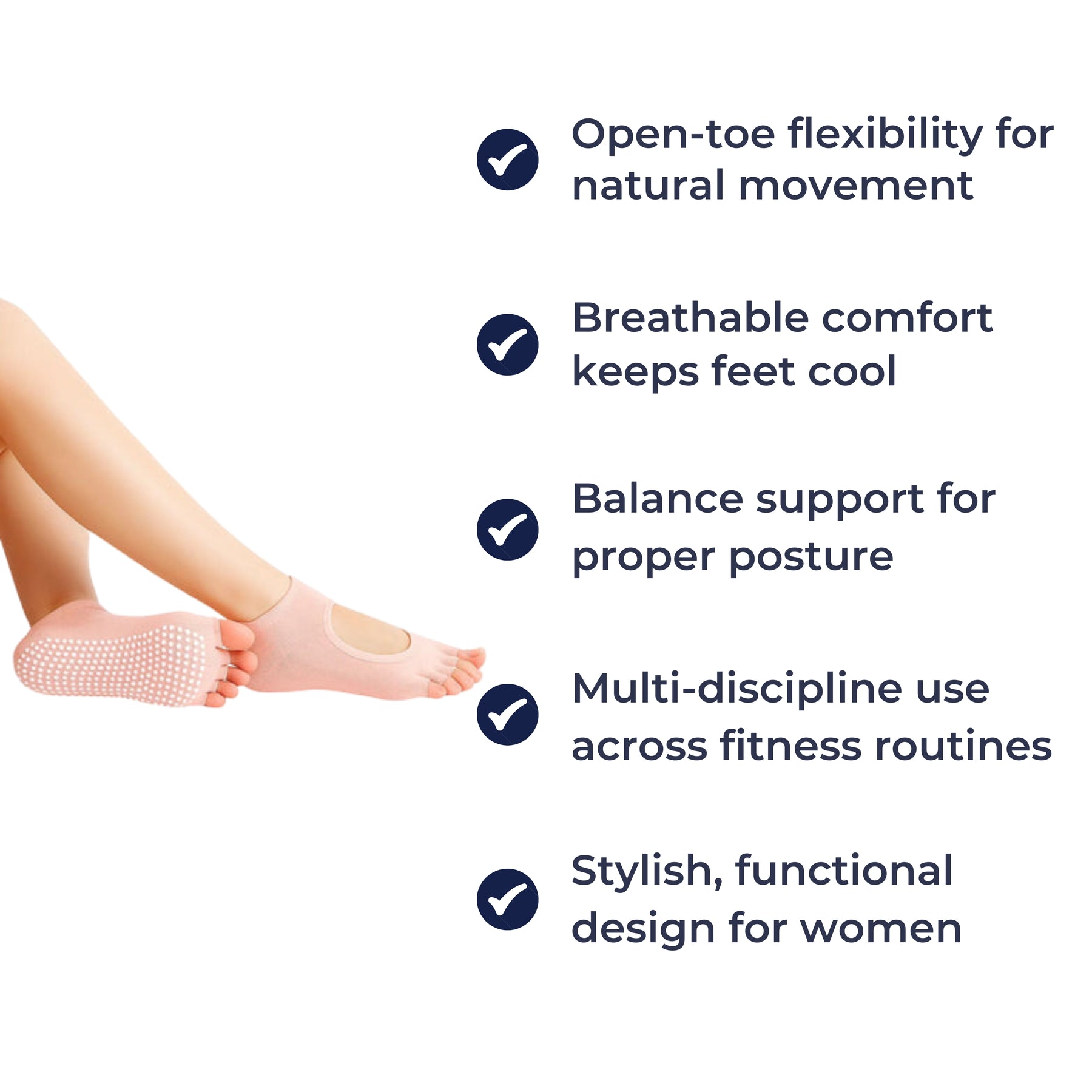 Slipping destroys confidence. Our FlowGrip Non-Slip Yoga Grip Socks grip the mat securely, keeping every stretch steady, safe, and controlled.