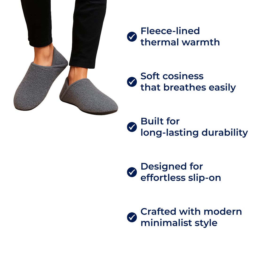 Fleece or faux-fur lining retains warmth and locks in body heat, keeping feet toasty and comfortable on chilly floors.