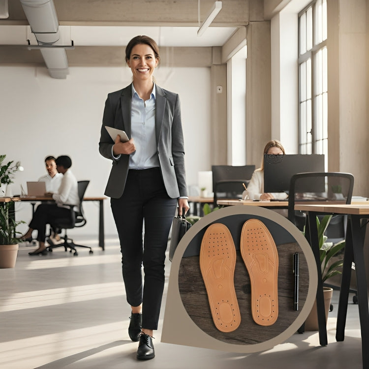 Aching heels slowing you down? The StrideGuard Shock Absorbing Leather Insoles cushion every step, easing pain and pressure instantly.