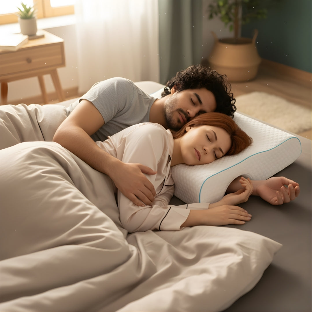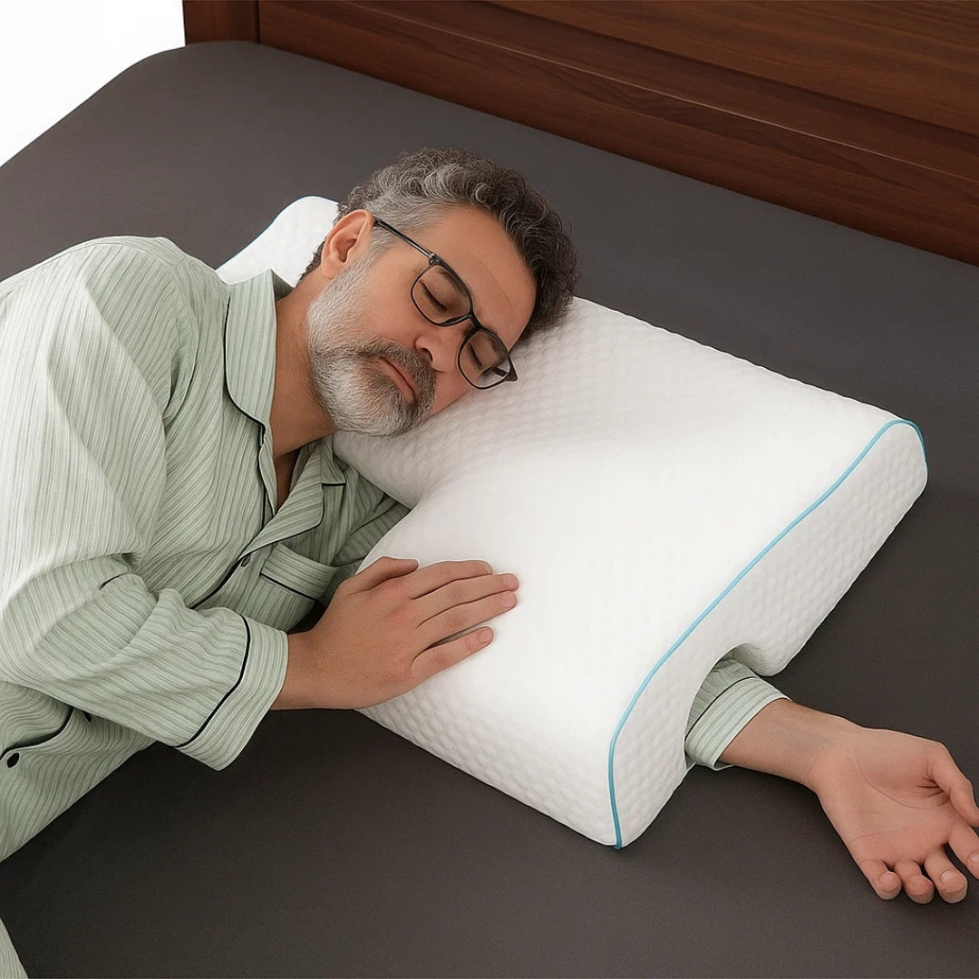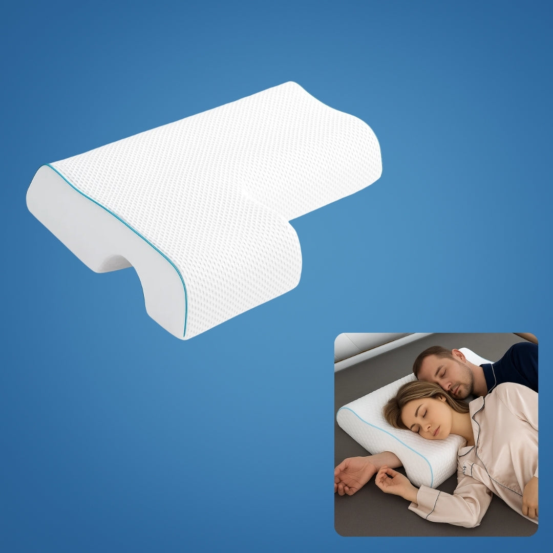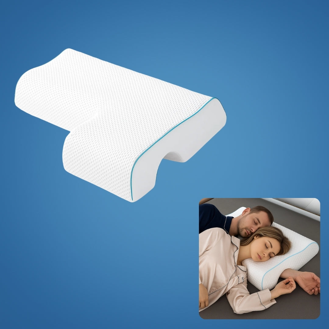 Struggling with arm numbness or shoulder pressure? The SleepEase Side‑Sleeper Couple Memory Foam Pillow arched design relieves pressure for unmatched comfort while side sleeping.