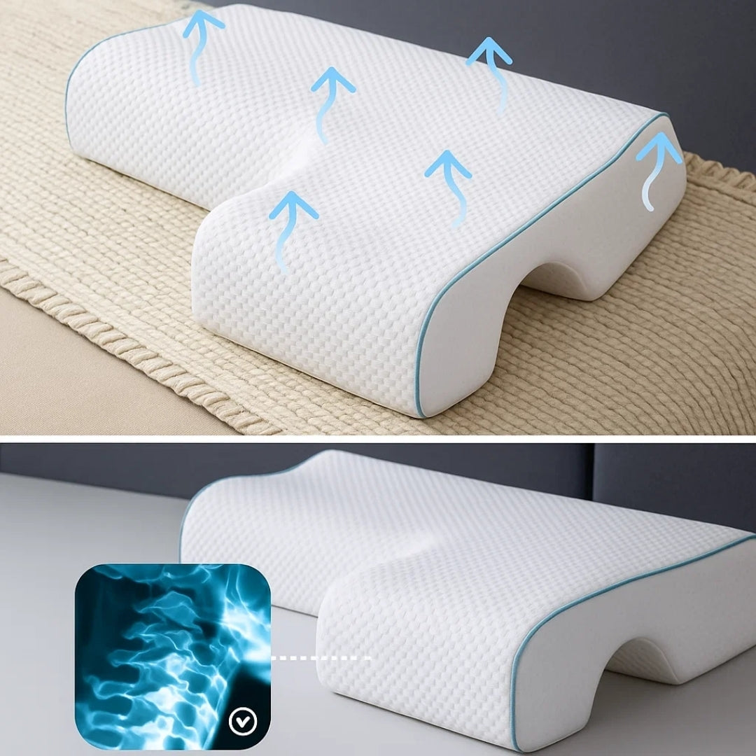 Our SleepEase Side‑Sleeper Couple Memory Foam Pillow aligns your head and spine during sleep, relieving neck strain and improving posture for pain-free, healthy rest every night.